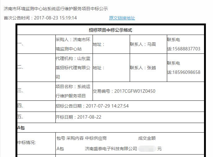 Warm congratulations to Jinan Shengtai Technology for winning the 6-year operation and maintenance service project of Jinan City's atmospheric online monitoring system