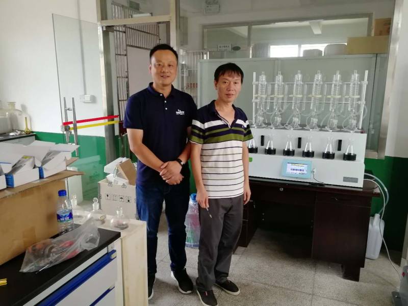 Figure 1: Jinan Shengtai engineers install and debug the intelligent integrated distillation instrument at a county environmental monitoring station