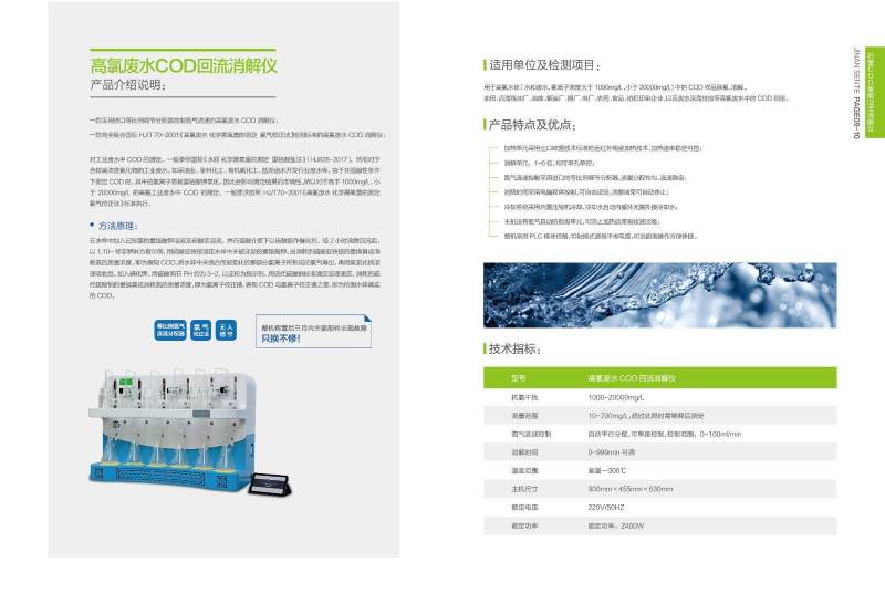 COD determination in high-chlorine wastewater such as oil fields, coastal refineries, oil depots, chlor-alkali plants, steel mills, power plants, pesticides, food, textile printing and dyeing enterprises, and deep-sea discharge of wastewater.